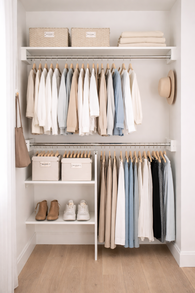 You don’t need a custom-built closet to create more room. A few well-chosen upgrades can dramatically increase your storage capacity and make your closet feel calmer and easier to use.