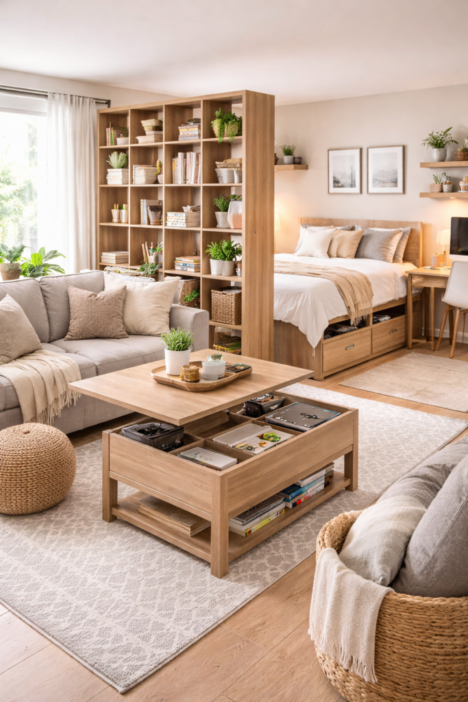 In a studio apartment, every piece of furniture should earn its spot. If something only serves one purpose, it may be taking up more space than it should.