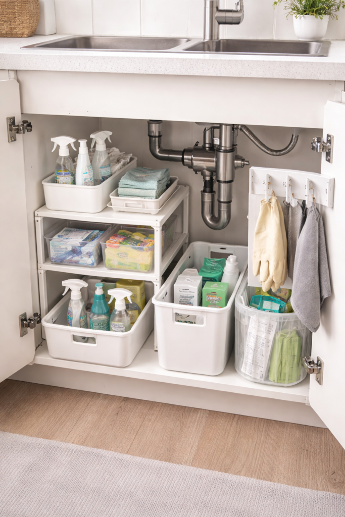 The cabinet under your kitchen sink is one of those places where things just… end up. Cleaning sprays, sponges, trash bags, random bottles you forgot you bought — it all gets shoved in there until opening the door feels like a risky decision.